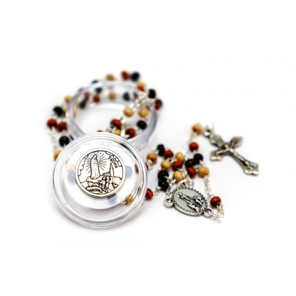 Delivered in a rosary box with a Fatima medal centrepiece in metal.